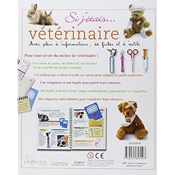 Pour tout savoir du métier de vétérinaire et pour s’amuser à l’imiter!- Un bel ouvrage illustré avec des autocollants, des fiches à remplir, et des objets en carton épais.- Un documentaire très riche de 24 pages pour découvrir le métier de vétérinaire et une multitude de cartes, de carnets et de fiches à remplir pour réaliser le suivi régulier de ses animaux en pelucheTout pour devenir un petit vétérinaire en herbe !